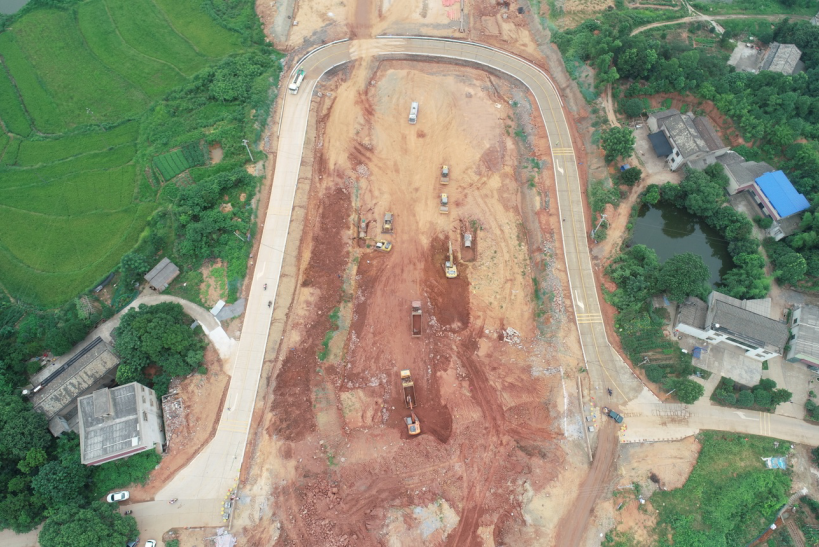 與項目主道相交的縣道X16飛龍橋路部分土方施工現(xiàn)場圖