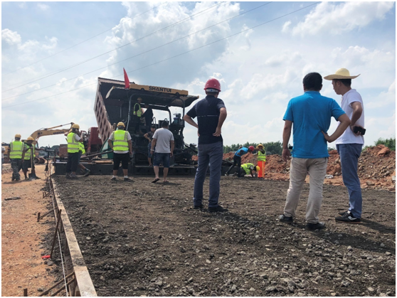 天易示范區(qū)物流園市政PPP項目試驗段水穩(wěn)料的攤鋪,將為全線路面基層施工奠定堅實的技術指導基礎,標志著全線路基部分施工基本結束,正式進入路面施工階段。