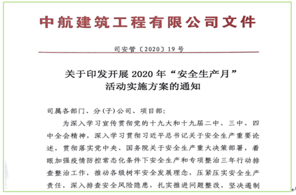 中航建筑工程有限公司2020年“安全生產(chǎn)月”活動(dòng)總結(jié)