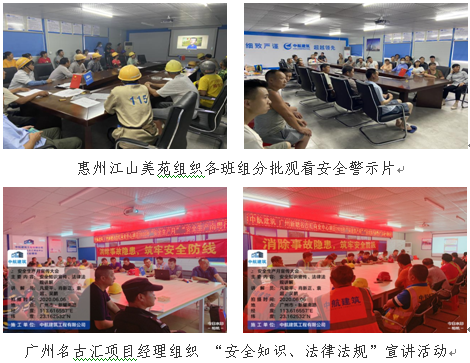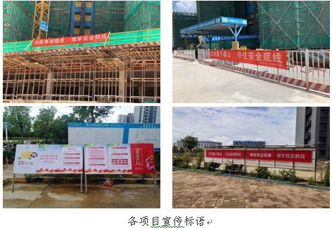 “安全生產(chǎn)月”啟動(dòng)后,各在建項(xiàng)目積極組織開(kāi)展各類(lèi)安全生產(chǎn)活動(dòng),按照公司要求懸掛符合公司VI形象的“安全生產(chǎn)月”活動(dòng)宣傳橫幅,粘貼安全警示標(biāo)語(yǔ)等形式宣傳貫徹公司關(guān)于“安全生產(chǎn)月”活動(dòng)通知精神,向一線施工人員普及安全生產(chǎn)知識(shí),積極推進(jìn)安全宣傳工作,營(yíng)造安全活動(dòng)氛圍。過(guò)程中,各項(xiàng)目記錄、整理了各項(xiàng)安全生產(chǎn)月活動(dòng)開(kāi)展情況。
