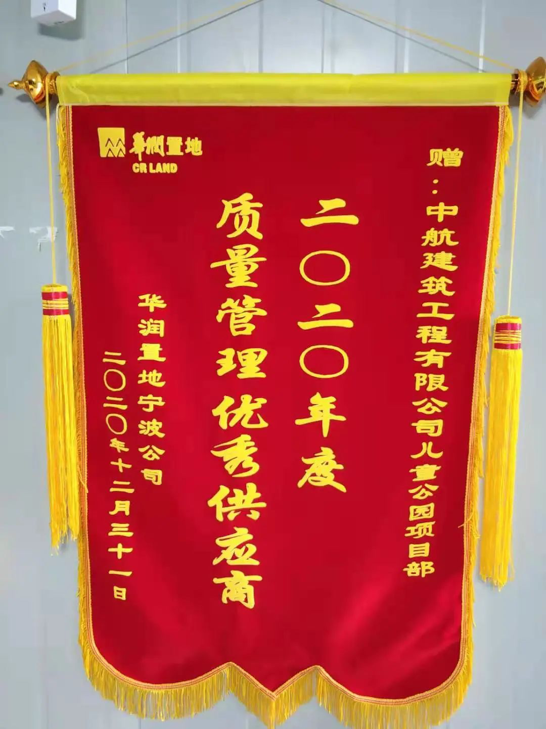 寧波兒童公園項(xiàng)目部榮獲華潤(rùn)置地 “2020年度質(zhì)量管理優(yōu)秀供應(yīng)商”榮譽(yù)稱號(hào)
