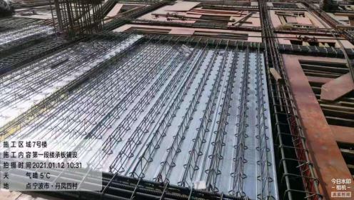 正在施工的寧波兒童公園項(xiàng)目7#棟,采用了新技術(shù)新工藝-多維組合樓板即樓承板施工方案,大大提高了裝配率,這也是華潤(rùn)寧波公司在民用建筑中的首次應(yīng)用。