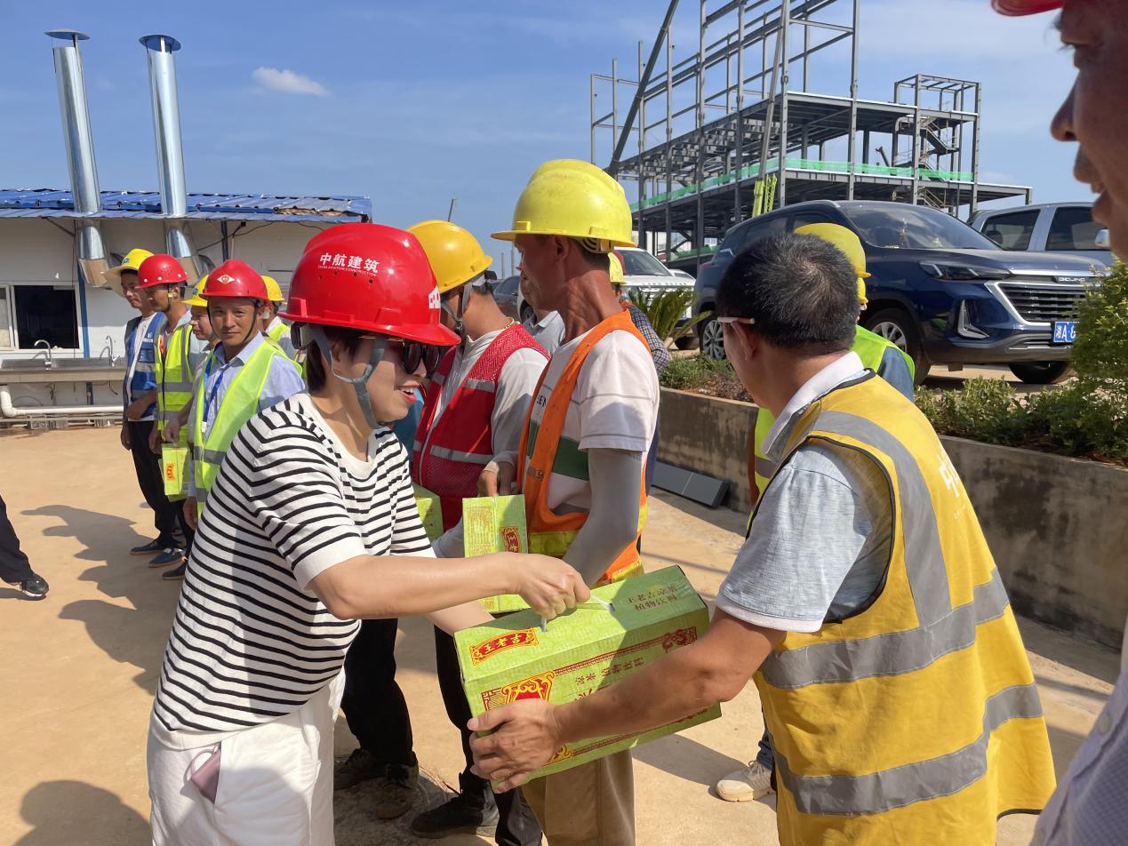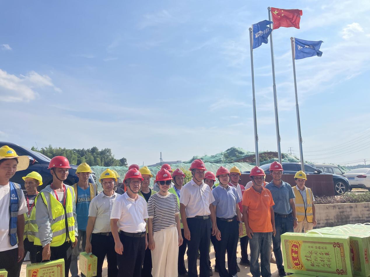 7月透藍(lán)的天空,酷暑難當(dāng),懸著火球般的太陽,云彩好似被太陽燒化了,也消失的無影無蹤。地上的土塊被燒的滾燙滾燙。為切實(shí)保護(hù)廣大一線管理人員及工人師傅平安度夏不中暑,上級(jí)工會(huì)湖南建工領(lǐng)導(dǎo)及公司工會(huì)主席一行專程前往中偉新能源項(xiàng)目開展高溫“送清涼”慰問活動(dòng),向奮戰(zhàn)在高溫酷暑中的一線施工人員送去最清涼的慰問。
