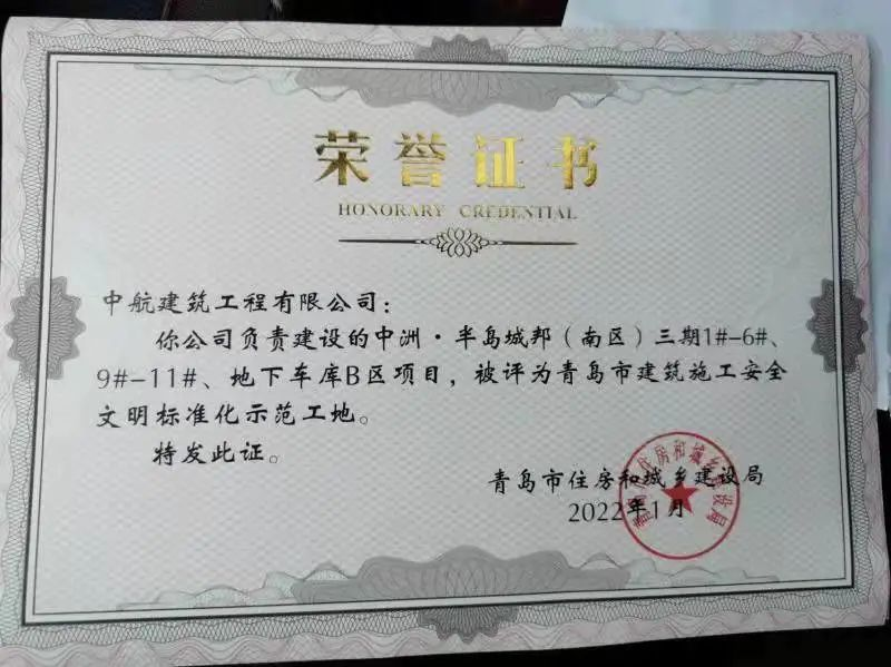 中洲·半島城邦,自開工以來,項目深入踐行精細化管理,嚴格推動施工安全生產標準化,文明施工管理和揚塵防控工作,成功在青島市樹立標桿!由青島市城鄉(xiāng)建設局對施工現(xiàn)場質量安全體系、安全生產管理、文明施工、質量管理、工程監(jiān)理、建筑隊伍管理、綠色施工、工程創(chuàng)新、雙重預防體系建設等9個方面進行評價后,公布了2021年青島市建筑施工安全文明標準化示范工地名單。其中,我司承建的中洲·半島城邦(南區(qū))三期1#-6#樓、9#-11#、地下車庫B區(qū)項目獲評“青島市建筑施工安全文明標準化示范工地”。