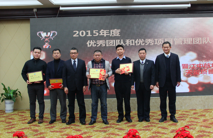 會上,公司對榮獲2015年度的優(yōu)秀團隊和個人進行了表彰,市場經(jīng)營部等5個團隊獲評優(yōu)秀團隊,劉紹華等4人榮獲優(yōu)秀項目經(jīng)理,鄒松霖等18人被評為優(yōu)秀員工,楊建成等9人獲評先進個人。公司領導向獲獎的團隊和個人頒發(fā)了獎牌和獎狀。