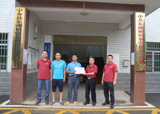 8月1日,公司總助楊意紅帶隊(duì),一行四人,帶著公司的祝福與員工的愛心,赴湖南寧鄉(xiāng)三個(gè)重災(zāi)區(qū)現(xiàn)場(chǎng)慰問、援助,先后到了東湖塘鎮(zhèn)泉塘灣村受災(zāi)特困戶,現(xiàn)場(chǎng)援助10000元;龍?zhí)镦?zhèn)七里山村,現(xiàn)場(chǎng)援助95000元;巷子口鎮(zhèn)黃鶴村,參與黃桃義賣活動(dòng)28800元。在龍?zhí)镦?zhèn)七里山村,村支部領(lǐng)導(dǎo)表示將把公司與員工的愛心款用于修建通往龍?zhí)镦?zhèn)的唯一通道——周家沖人行橋。