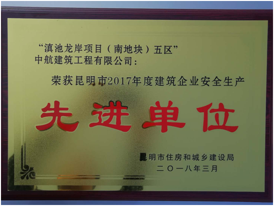 公司榮獲 “昆明市2017年建筑企業(yè)安全生產(chǎn)先進(jìn)單位”稱號(hào)