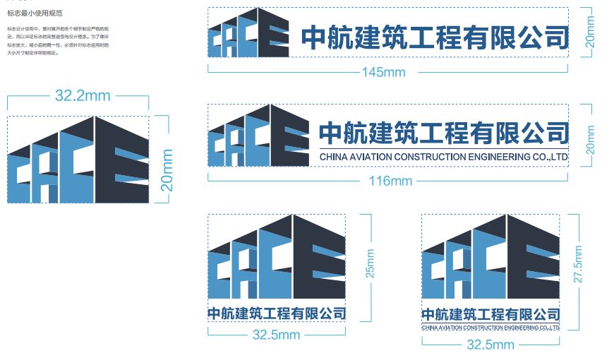 Logo造型以字母CACE為基礎(chǔ)元素。Logo采用標(biāo)準(zhǔn)的“黃金比例”進(jìn)行分組排布,彰顯美感。黃金比例在眾多建筑中均有運(yùn)用,造就了一系列經(jīng)典的優(yōu)美的傳世名作,例如帕特農(nóng)神廟。此處借用黃金比例的優(yōu)美造型和傳世悠久的意義,寓意企業(yè)能在未來(lái),一枝獨(dú)秀,長(zhǎng)遠(yuǎn)發(fā)展,讓未來(lái)更加美好的企業(yè)愿景。整體造型以方正的建筑為藍(lán)本,進(jìn)行變化延伸,符合企業(yè)的業(yè)務(wù)范疇,Logo的每一根線條,遵循標(biāo)準(zhǔn)的透視規(guī)律,突出企業(yè)的穩(wěn)重形象以及一絲不茍的企業(yè)精神。